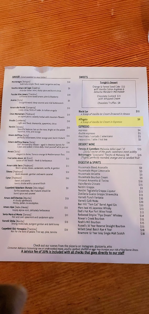 The highlight of Etto's menu is undoubtedly its brick oven pizzas. Diners rave about the perfect crust, with standout options like the Braised Fennel Rosemary Pizza and the Chanterelle Pizza, despite a few mushrooms on a less flavorful night. Side dishes, such as the divine cauliflower, complement these gourmet pies beautifully. For dessert, the Affogato is a must-try, combining espresso with a scoop of ice cream for a decadent experience.